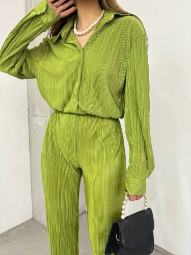 Kadın uzun kollu göğüs dekolteli ithal krep bluz ve pantolon ikili takım