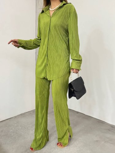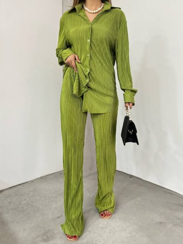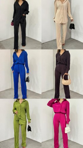 • Bayrama Özel kadın düşük omuz salaş gömlek ve yırtmaç detay İspanyol paça pantolon