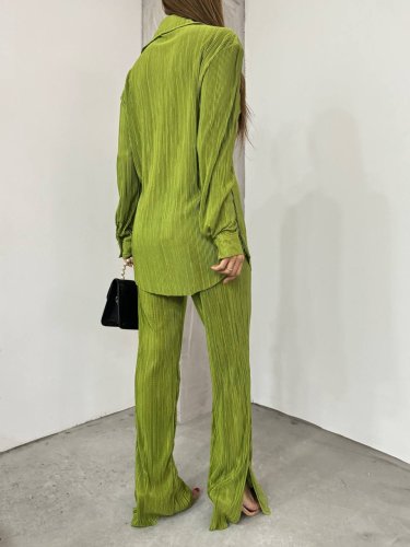 Bayrama Özel kadın düşük omuz salaş gömlek ve yırtmaç detay İspanyol paça pantolon