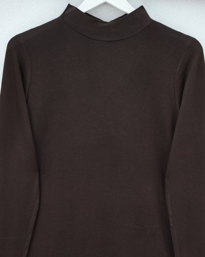 Dik Yaka Uzun Kol İçlik Bluz Kahve